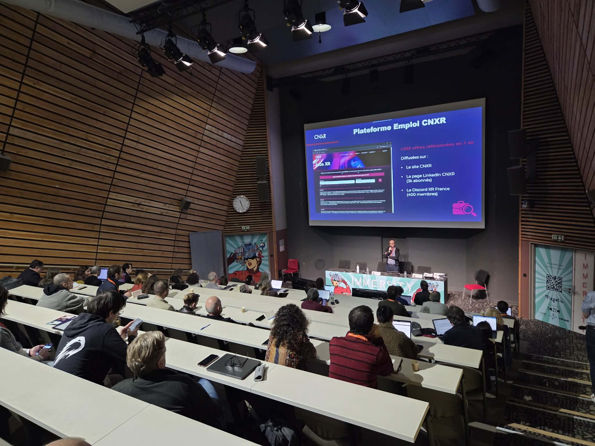 Les 18 et 19 mars 2026, Magelis a organisé à Angoulême la (déjà) neuvième édition d’IMMERSITY. Ce colloque de deux jours sur la XR créative bénéficie du soutien du Centre national du cinéma et de l’image animée. Il se déroule au Cnam-Enjmin, la grande école publique du jeu et des médias interactifs numériques, en partenariat avec le Festival Courant 3D et la participation du magazine professionnel Le Film Français. Mathieu Gayet (XR Must) en a assuré la programmation.