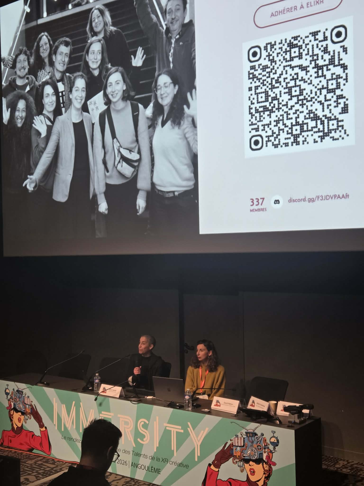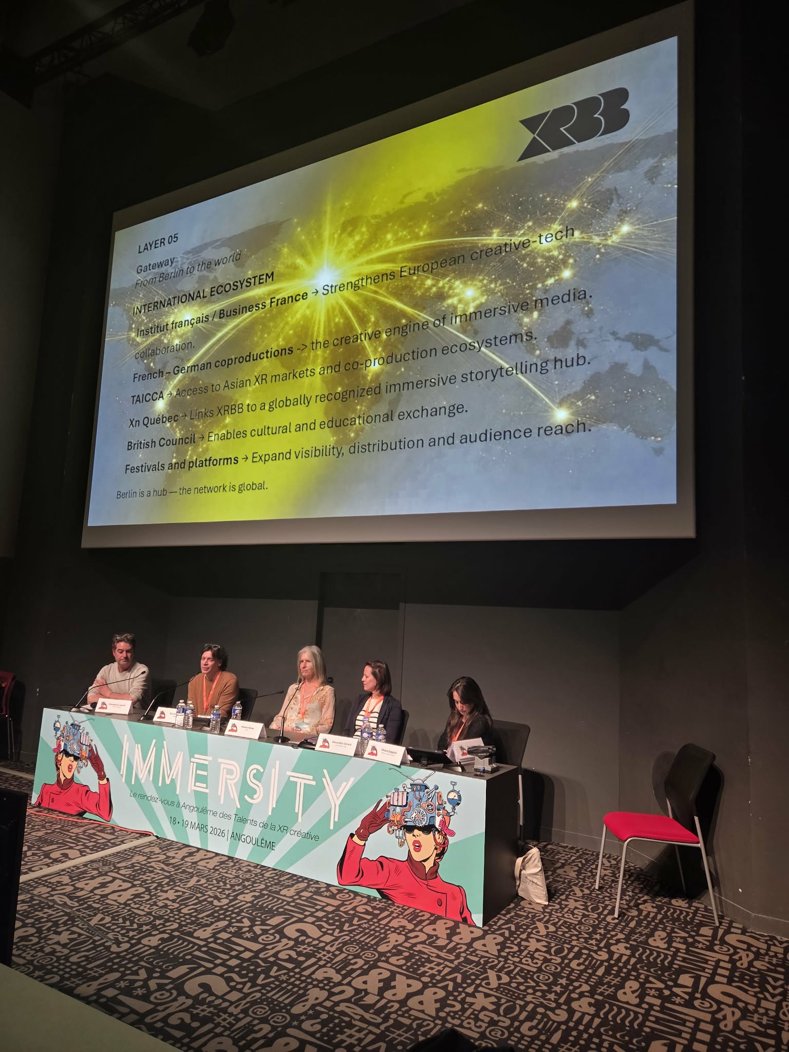 • Helen Rouw (CIIIC, Pays-Bas), Alexandra Gérard (UnitedXR Europe), et Tim Deussen (XRBB, Allemagne et XR4Europe) pour la table ronde « What’s up in Europe ? ».
