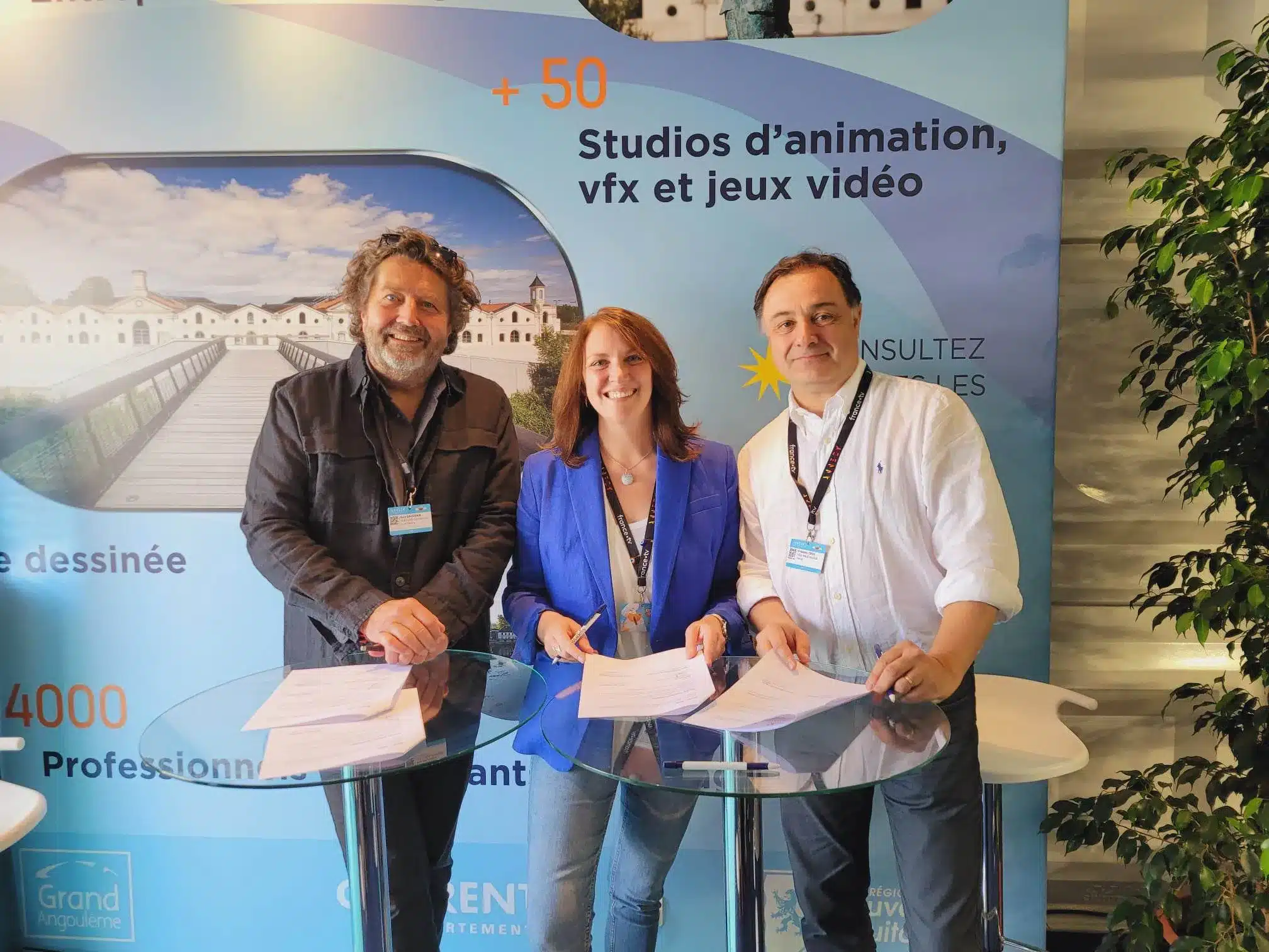 A l’initiative de Magelis, le Département de la Charente, Wallimage SA et le Film Fund Luxembourg se sont rapprochés pour proposer une nouvelle mesure incitative à l’écriture d’œuvres d’animation cinématographiques et télévisuelles. La signature a eu lieu pendant le Festival d’Annecy le jeudi 15 juin 2023.