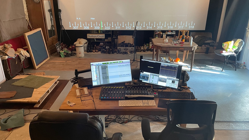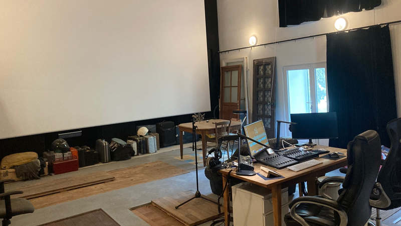 Un gite sur place est dédié à l’hébergement des équipes ( ingénieurs du son, réalisateurs,…) pendant les périodes de bruitage. Le studio a été crée dans une ancienne laiterie. Les murs d’origine en pierre ont été conservés pour offrir une acoustique de qualité, renforcée par sa hauteur sous plafond (6mètres) et son volume (300m3). Les portes et fenêtres vitrées associées à un projecteur puissant permettent si besoin de profiter de la lumière du jour. Le large stock de matériel de bruitage disponible sur place, fruit de 20 années d’expérience, facilite la création sonore et le côté « sur-mesure » de l’aménagement du studio optimise le travail du bruiteur.