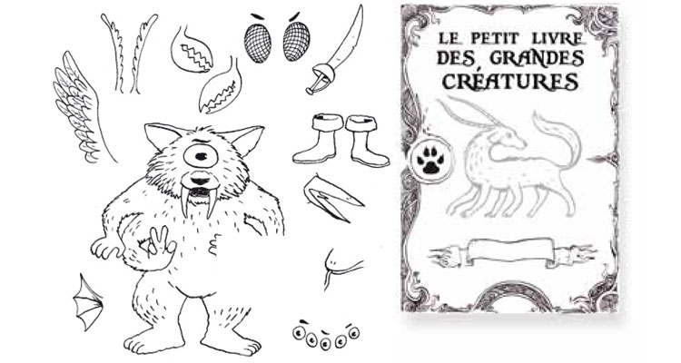 L’animation consiste à créer un livret méli-mélo avec des créatures. Chaque enfant inventera plusieurs monstres à l’aide d’exemples d’yeux, de pattes, de queues etc… et même à lui donner un nom. L’intervenant pourra aider les enfants en proposant des astuces ou des idées pour dessiner un monstre terrible ou rigolo. Chacun aura la fierté d’avoir créé son livre et pourra le faire découvrir aux copains.
