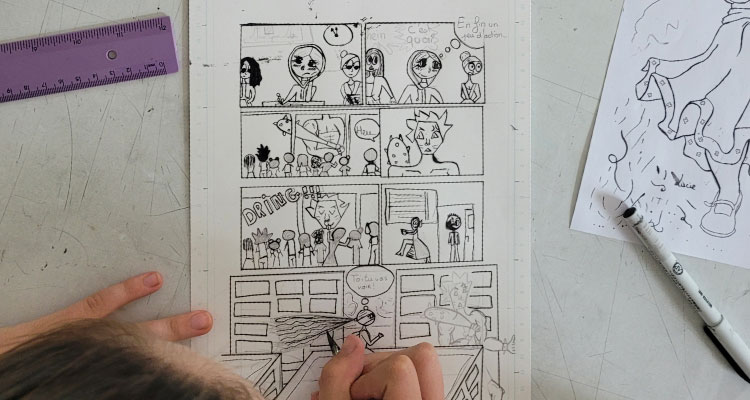 Initiation aux techniques de dessin et d’écriture des mangaka: pendant cinq séances de deux heures par jour, dessinez votre propre manga court (1 à 5 pages), de la création du personnage principal à l’étape d’encrage.