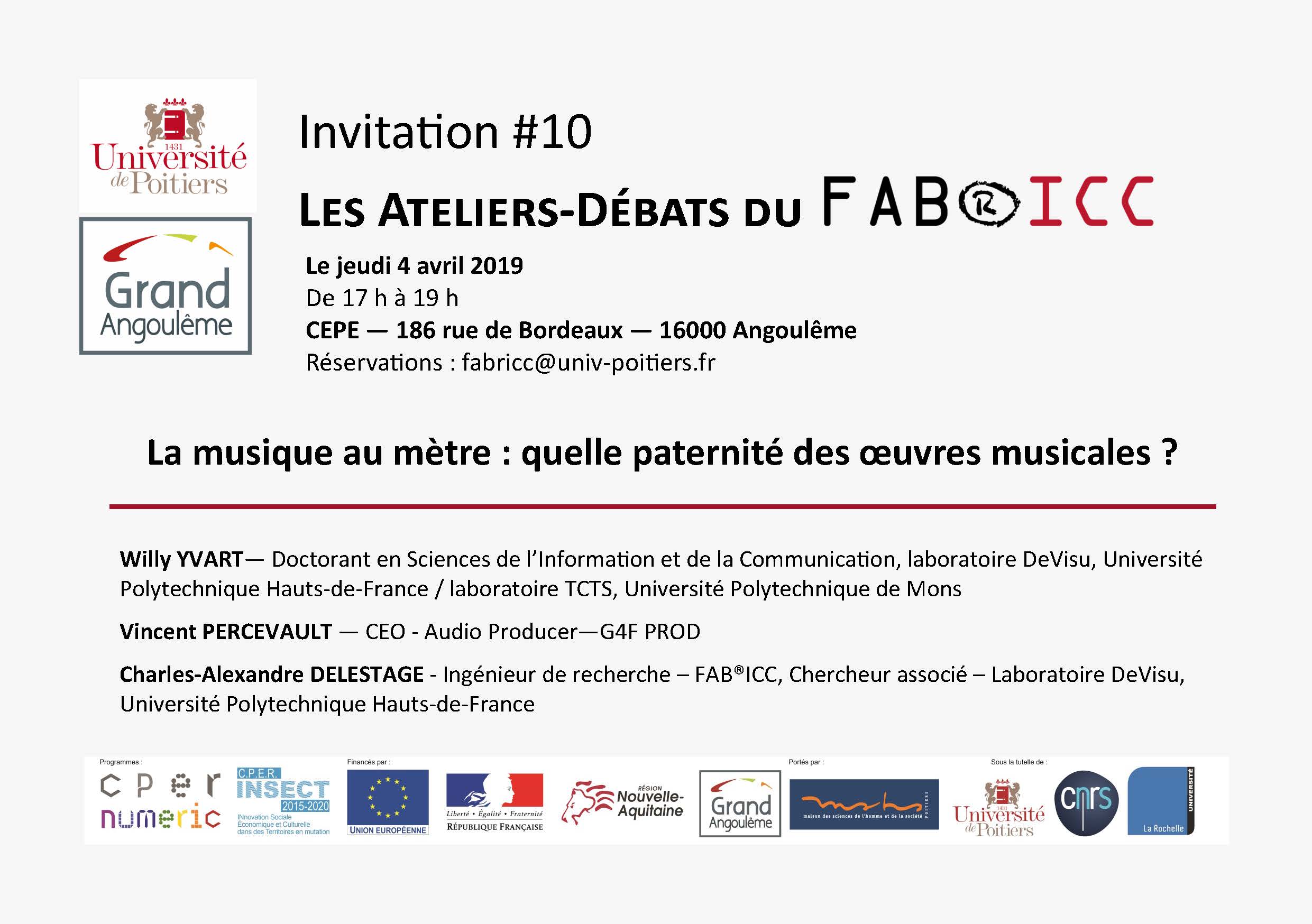 Initiative de l’Université de Poitiers qui a constitué une équipe pluridisciplinaire de chercheurs et spécialistes (économie, gestion, communication, arts numériques, droit du numérique, propriété intellectuelle, sciences et techniques informatiques), le FAB®ICC est financé et soutenu par l’Union Européenne (FEDER  INSECT), par l’Etat, la Région Nouvelle-Aquitaine et Grand Angoulême (CPER INSECT & NUMERIC).