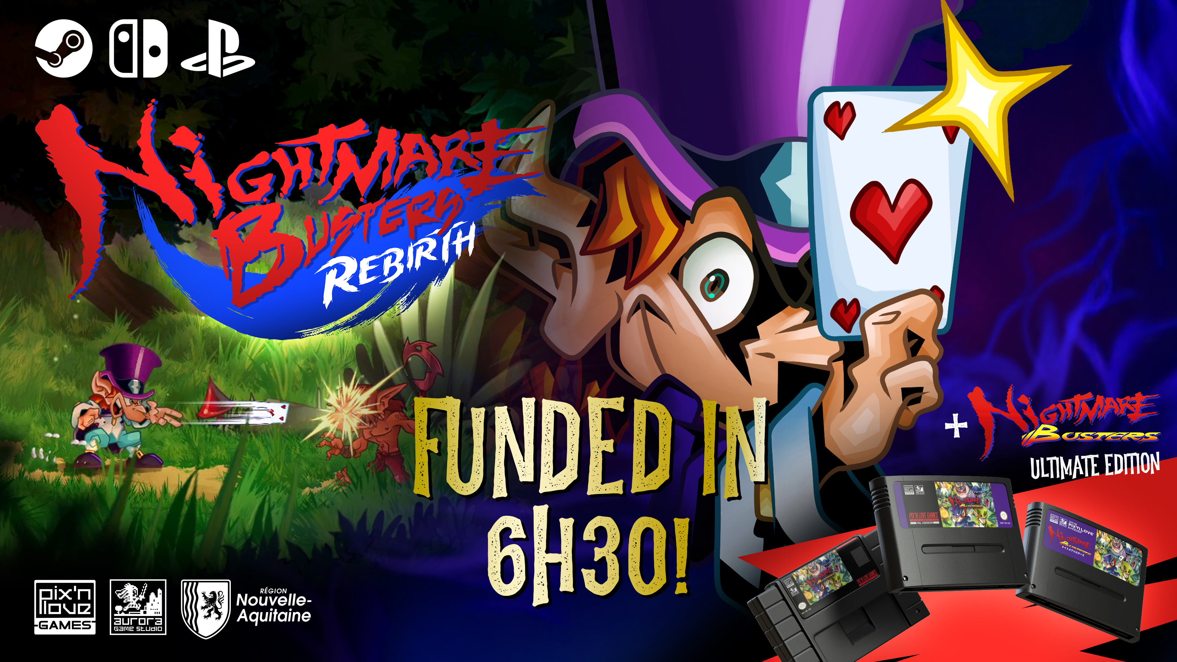 Pour rappel, l’objectif de cette campagne est de financer la fin du développement de Nightmare Busters Rebirth, la réimagination d’un jeu vidéo français développé sur Super Nintendo, et dont la sortie, pourtant prévue pour 1995, a été annulée à cause de la sortie, la même année, de la première PlayStation.