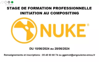 Stage de formation professionnelle "Initiation au compositing" proposée par l'Emca Du 10 au 28 Juin 2024 La formation est dispensée sur le site de l'EMCA, au château de Dampierre - 1 Rue Dampierre 16000 Angoulême Renseignements et inscriptions