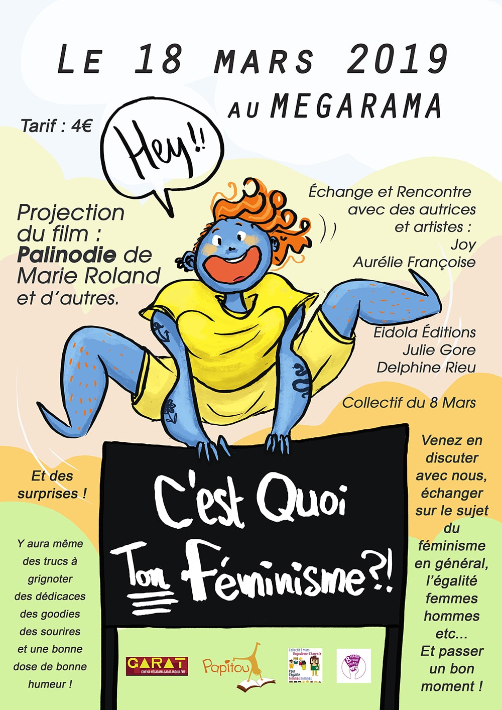 Avec également de nombreux stands – Collectif 8 mars Angoulême-Charente – Eidola Éditions – Papitou – Doulas de France – etc…-, une exposition et de quoi grignoter sur place pour échanger, discuter sur le thème de “c’est quoi ton féminisme ?