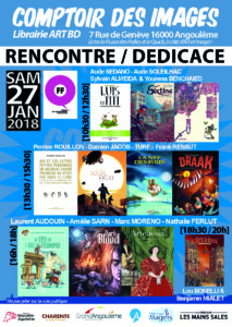 Au vue de la table ronde prévue entre 15h à 16h, l’accès au Comptoir des Images sera limité. Les dédicaces seront faites en priorité aux clients/lecteurs, présents dès 15h pour la table ronde. Toute personne arrivée après 16h, sera bien entendu accueillie en fonction de la jauge acceptable pour ce lieu. Merci de votre compréhension !