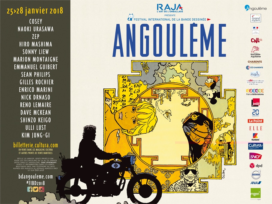 Programmation 2018 : Cosey – Une quête de l’épure, Alix – L’art de Jacques Martin, Osamu Tezuka – Manga No Kamisama, Fairy Tail, Emmanuel Guibert, L’art de Naoki Urasawa, Oriane Lassus, Le monde selon Titeuf, Gilles Rochier – Faut tenir le terrain, Marion Montaigne ramène sa science, Venise sur les pas de Casanova, Sonny Liew, le Prodige de Singapour… Vous avez rendez-vous avec toute la bande dessinée à Angoulême! Programme complet en cliquant sur l’image