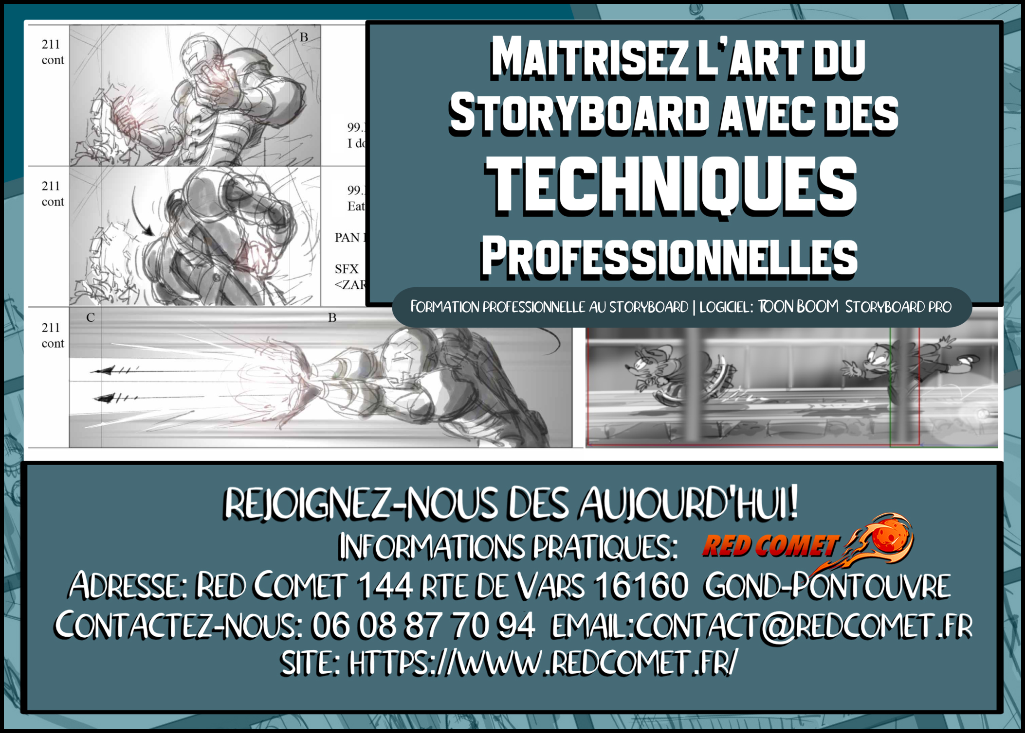 Le centre de formation Red Comet offre aux professionnels des métiers du cinéma et de l’audiovisuel, mais aussi aux débutants, toutes les clés et compétences pour devenir d’excellents storyboarders. Les formations sont dispensées par Christophe Malcombe, un professionnel avec 30 ans d’expérience dans la production de storyboard et d’animation…