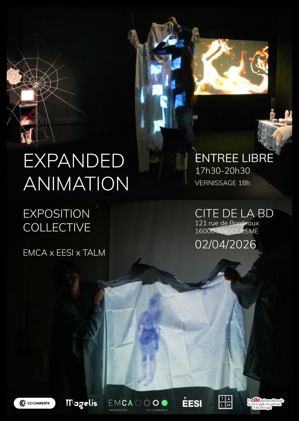 Venez découvrir l’exposition éphémère des étudiants de l’EMCA, de l’EESI et de TALM Angers qui se déroulera le jeudi 2 avril de 17h30 à 20h30 à la Cité internationale de la bande dessinée et de l’image – Vaisseau Moebius et à l’EESI – salle aux colonnes.