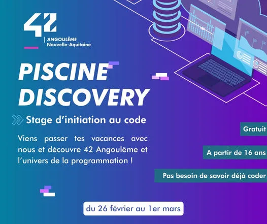 L’école 42 Angouleme lance les initiations au code pour les jeunes à partir de 16 ans et organise un stage découverte du code, la piscine discovery, du 26 février au 1er mars.