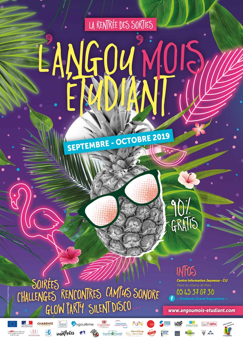 Pour la quatrième année consécutive, la Student Team du Centre Information Jeunesse propose l’Angou’Mois Etudiant ! Du vendredi 06 Septembre au Jeudi 10 Octobre, les étudiants angoumoisins auront ainsi l’occasion de (re)découvrir toute la richesse de notre territoire.