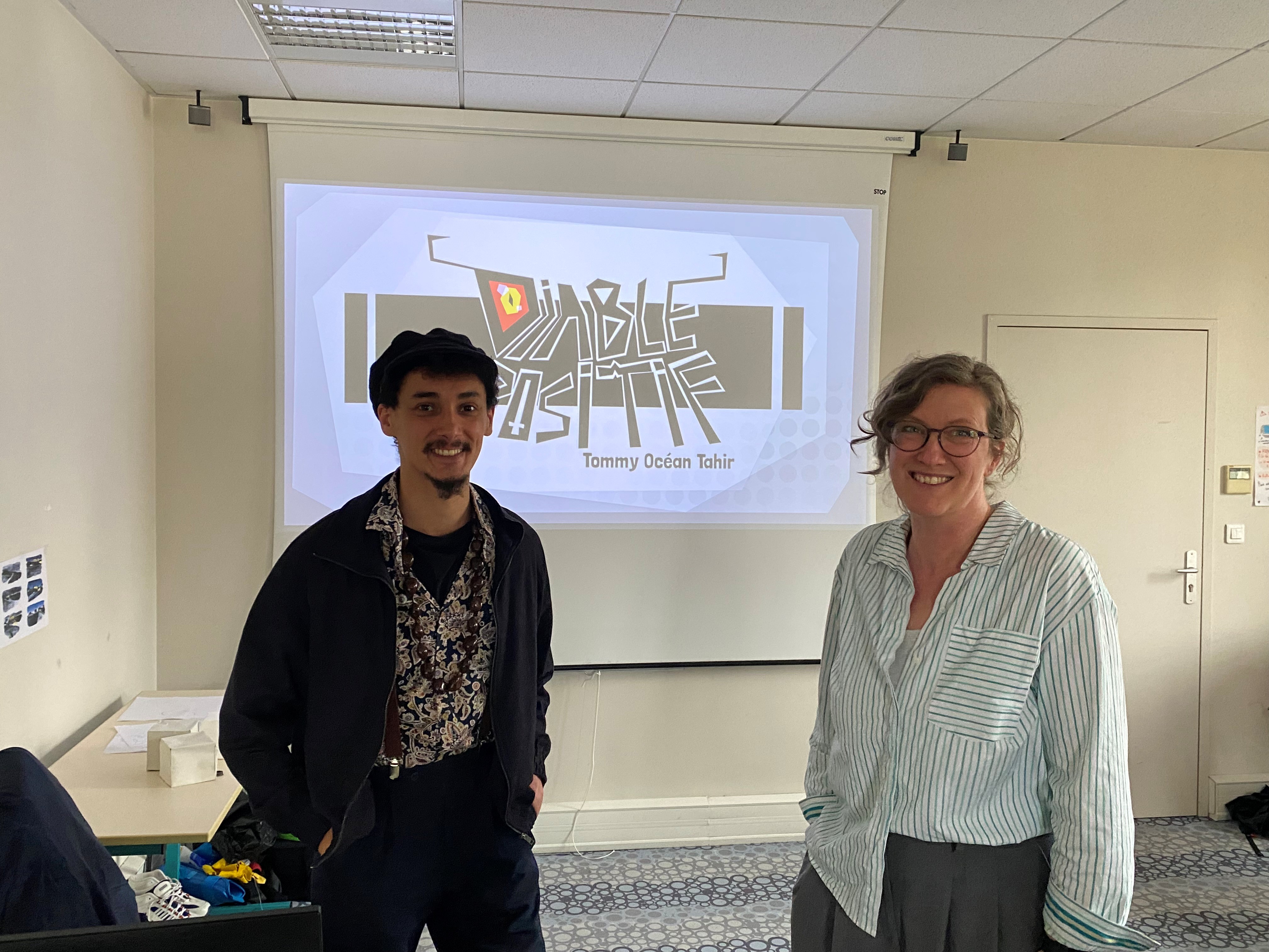 Le Diable Positif, ancien étudiant de l’EMCA, est venu présenter son travail aux Masters 1 lors de l’atelier « Animation pour le web » encadré par Stéphanie Cadoret.