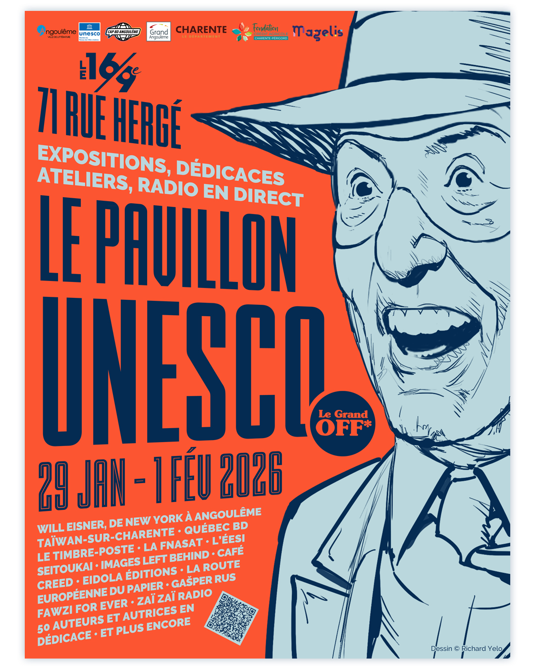 Du 29 janvier au 1er février, Angoulême va vivre au rythme inédit du Grand Off. Cap BD Angoulême participera aux festivités avec une nouvelle édition du Pavillon UNESCO dans l’espace entièrement rénové et relooké du 19/6e et un riche programme dont le fil conducteur sera le lancement du projet de statue dédiée à l’un des plus grands créateurs de bande dessinée de l’histoire, le new yorkais Will Eisner.