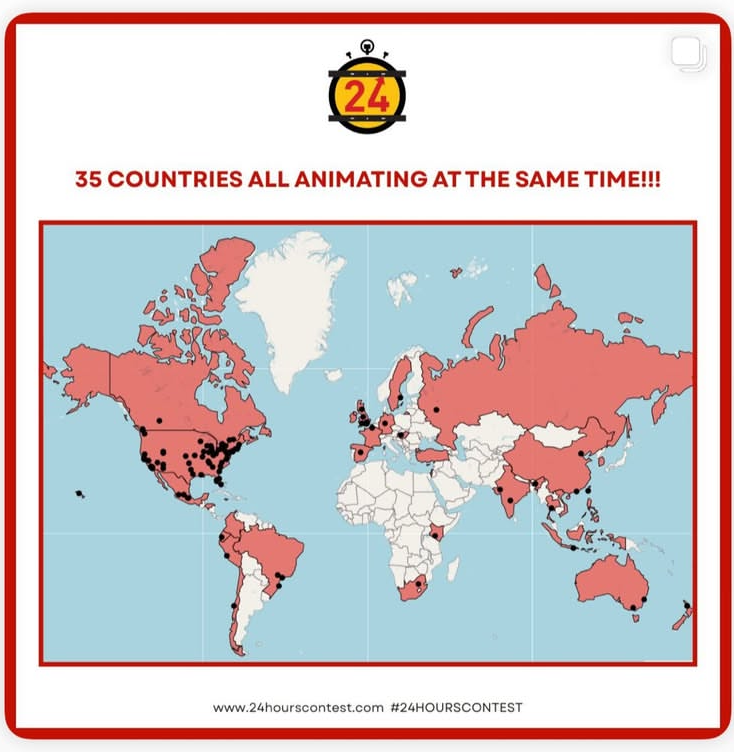 24hoursanimationcontest, c’est un événement international où les étudiants s’affrontent par équipe de 5 pour créer un film d’animation de 30 secondes en seulement 24 heures.
