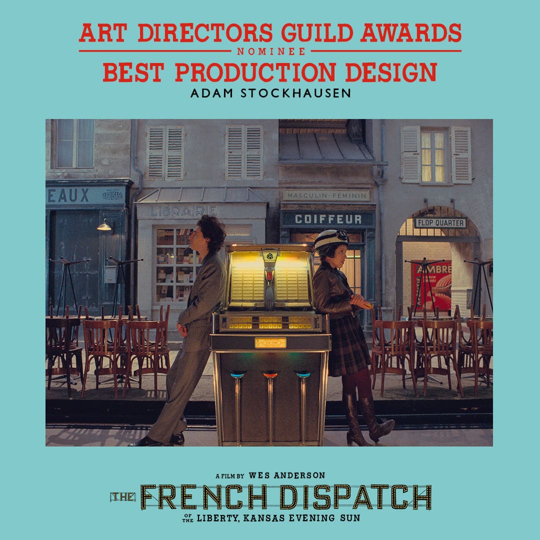 Le terme Writers Guild of America fait référence au syndicat des scénaristes américains. Ce syndicat protège les droits d’auteur des scénaristes, tout en les favorisant dans le domaine du cinéma. - Adam Stockhausen est nommé pour les décors de The French Dispatch pour le Meilleur Design de Production (Film de période) par le Art Directors Guild